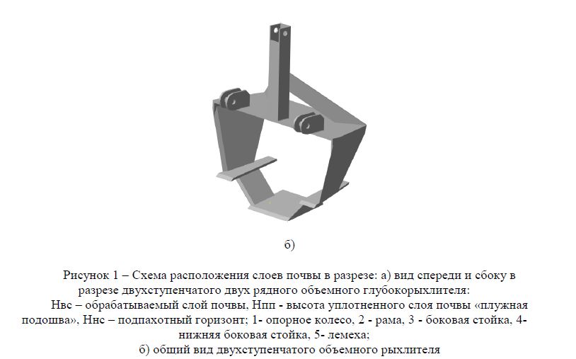 В Московском государственном университете природообустройства (теперь Российский государственный аграрный университет им. К.А. Тимирязева) разработан оригинальный глубокорыхлитель [7], предназначенный для рыхления почвы на глубину до 0,6м, использование которого позволит повысить качество рыхления почвы, разрушить подпахотный уплотненный слой и снизить энергоемкость процесса обработки.